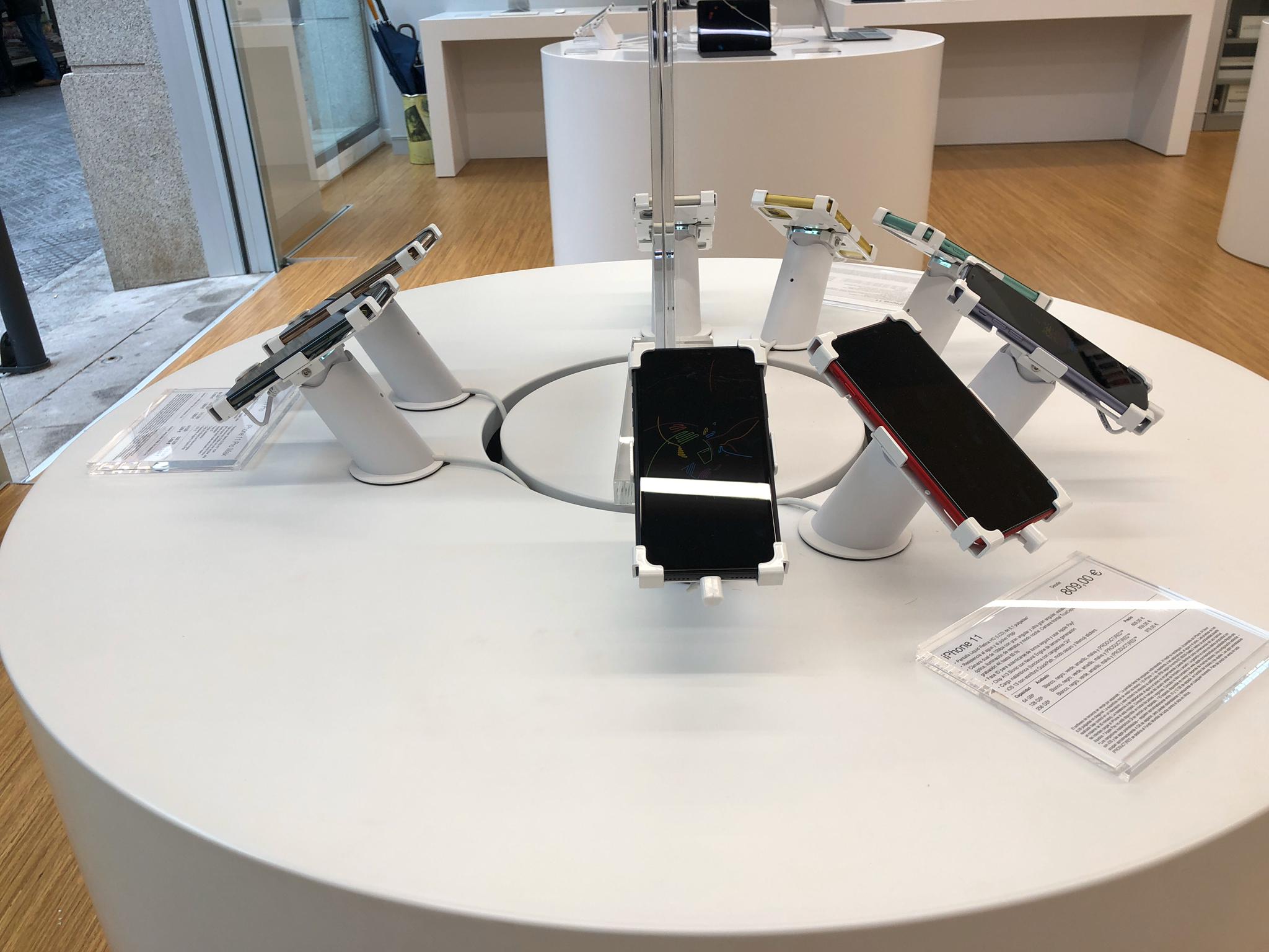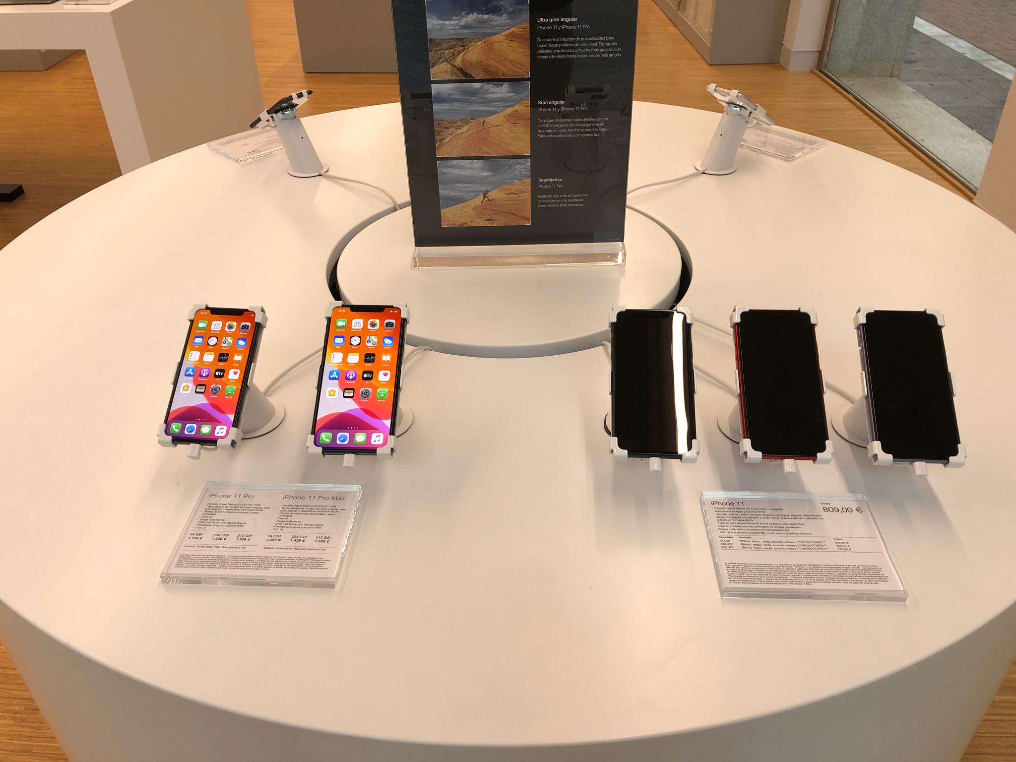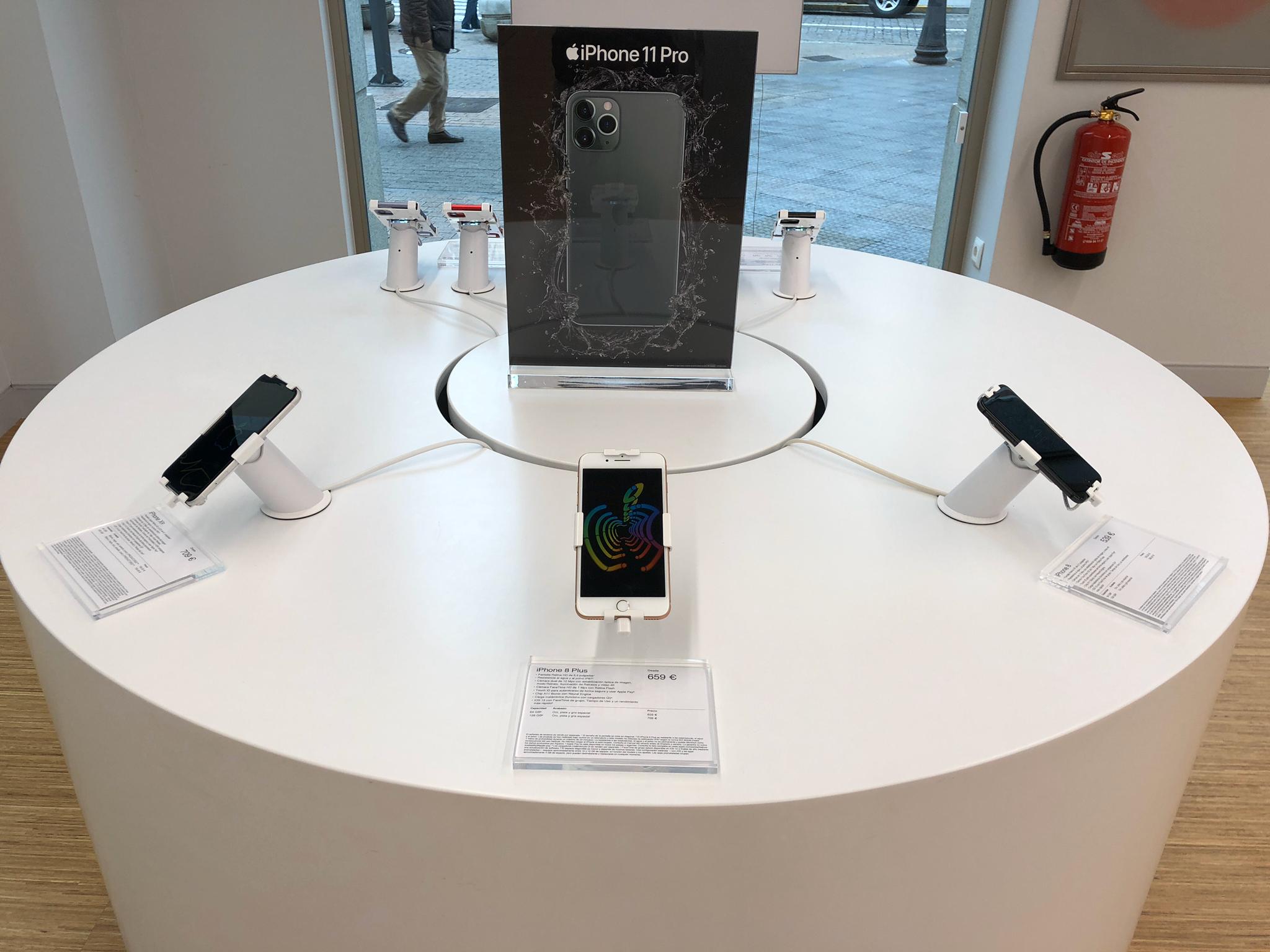 Además, hemos asesorado al personal de estas tiendas en la activación y funcionamiento de nuestras soluciones que, a la vez que garantizan la máxima seguridad, permiten al cliente interactuar con total libertad con el producto. Cada soporte de Freedom Micro de alta seguridad lleva sus brackets específicos para cada modelo de iPhone (iPhone 11 Pro Max, iPhone 11 Pro, iPhone 11, iPhone 8 Plus, iPhone 8, iPhone XR).