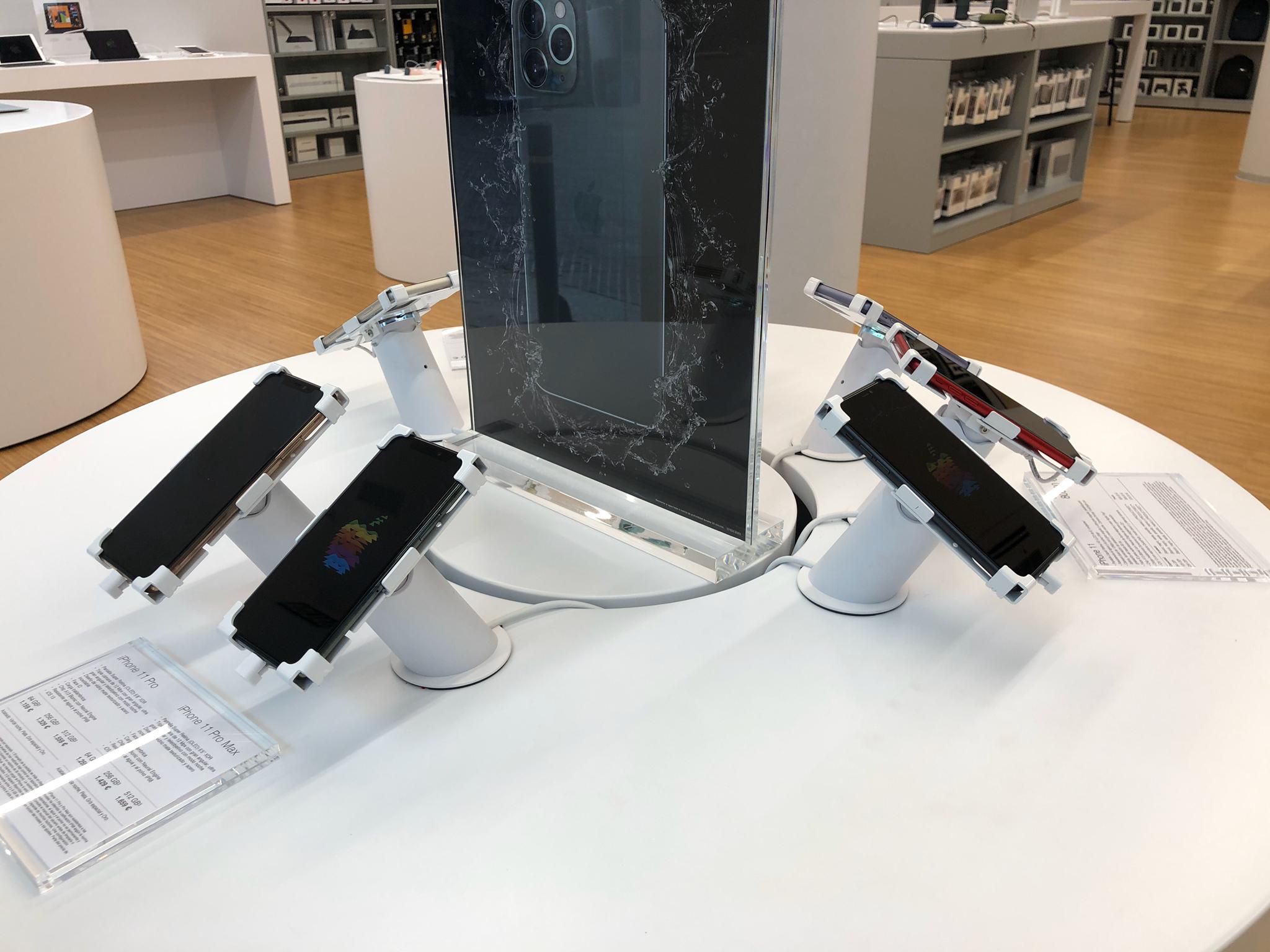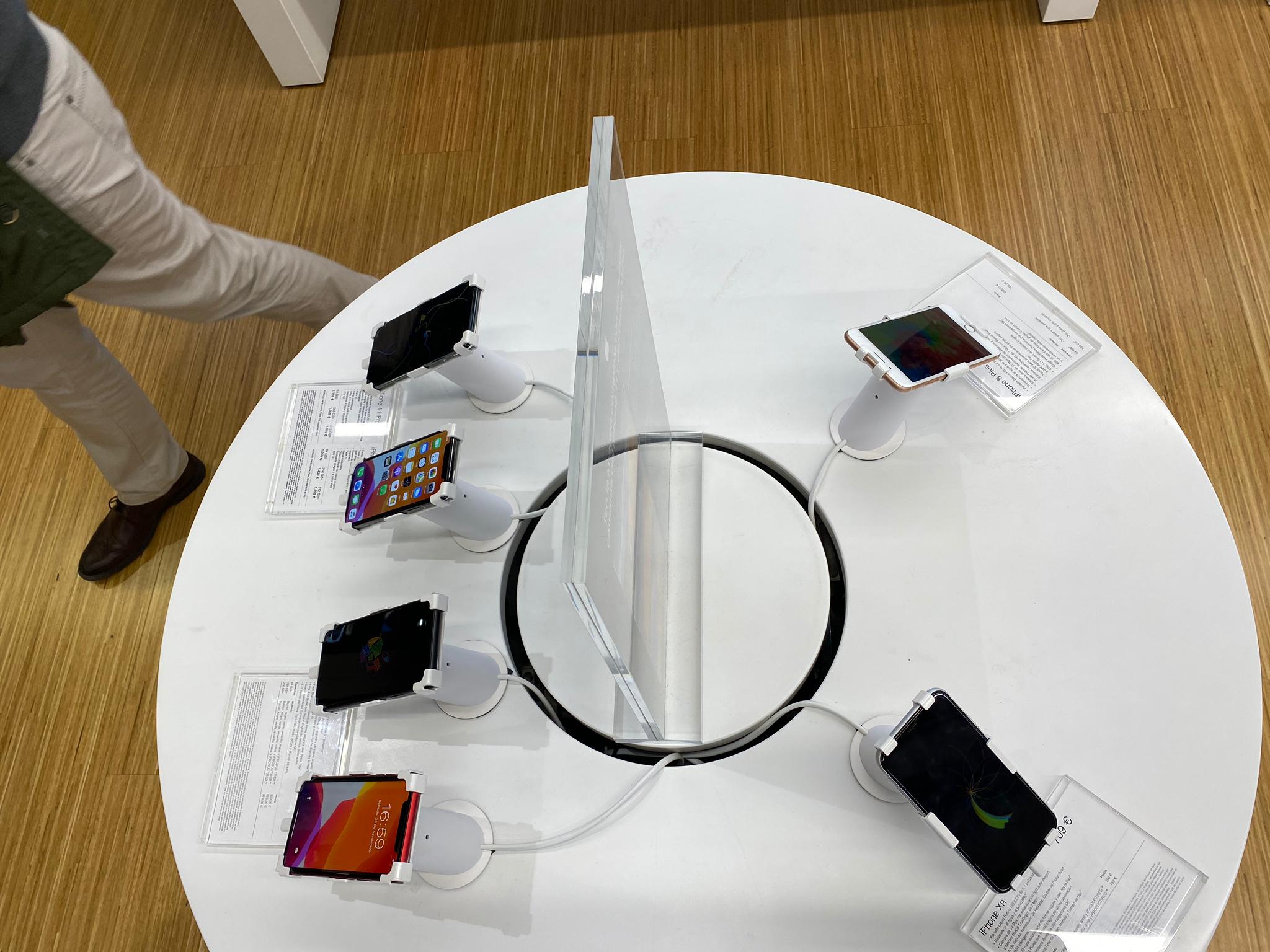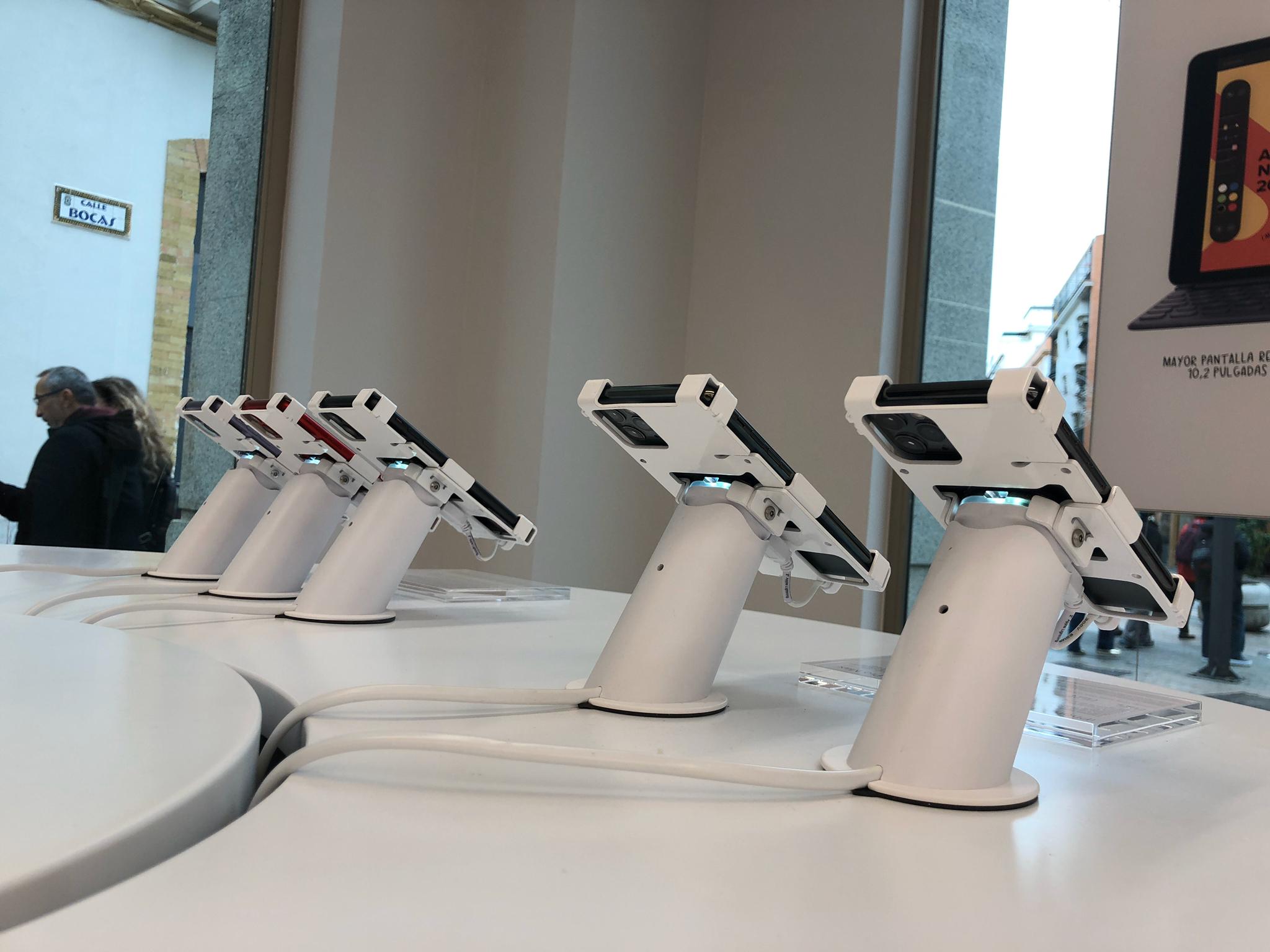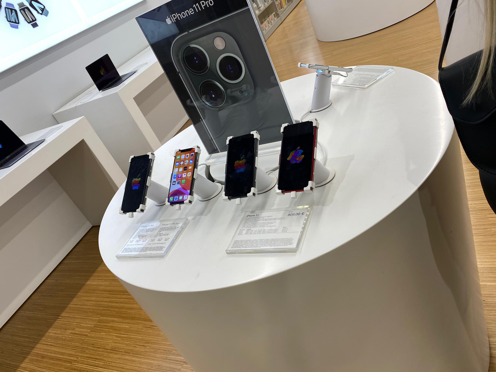 Además, hemos asesorado al personal de estas tiendas en la activación y funcionamiento de nuestras soluciones que, a la vez que garantizan la máxima seguridad, permiten al cliente interactuar con total libertad con el producto. Cada soporte de Freedom Micro de alta seguridad lleva sus brackets específicos para cada modelo de iPhone (iPhone 11 Pro Max, iPhone 11 Pro, iPhone 11, iPhone 8 Plus, iPhone 8, iPhone XR).
